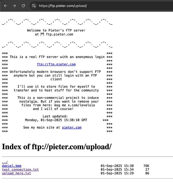 get my first anonymous FTP spam ftp.pieter.com/upload