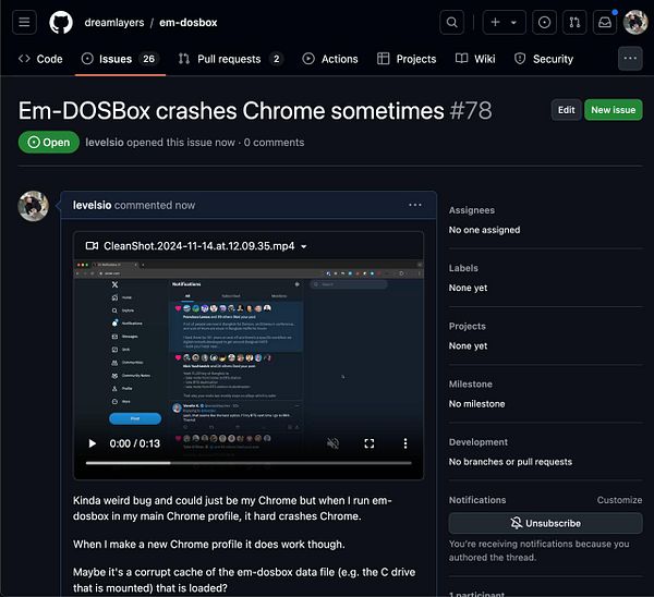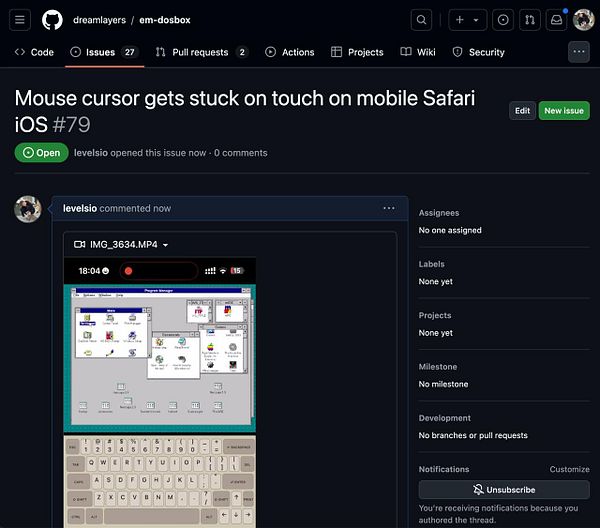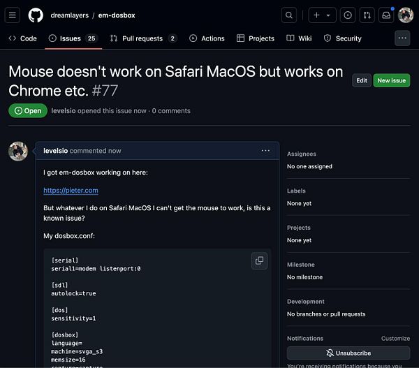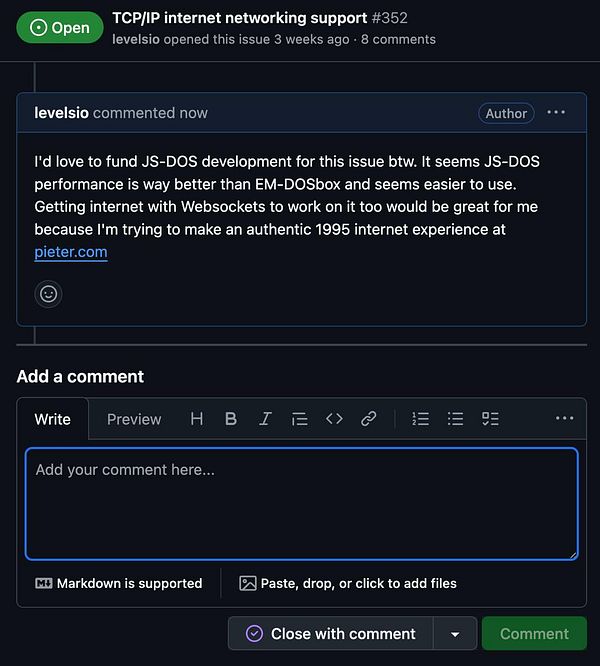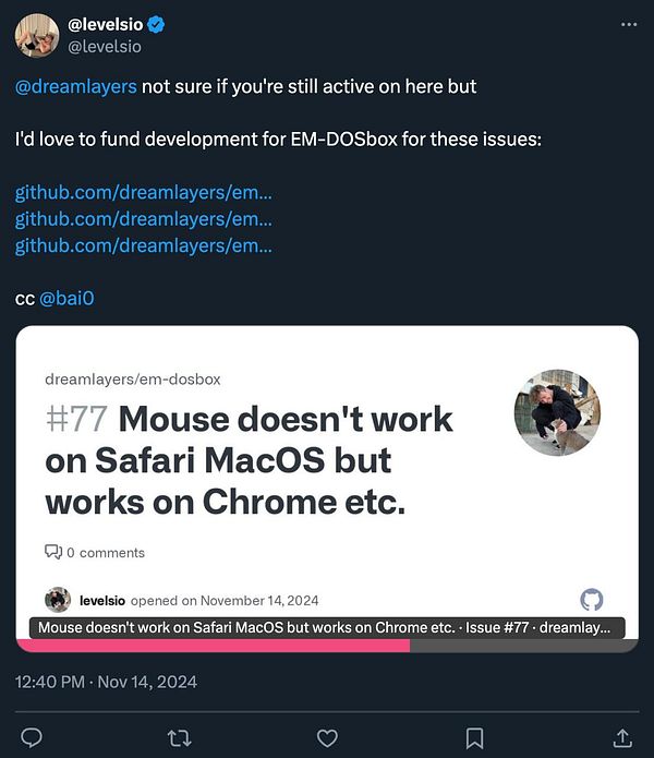 suggest on my JS-DOS issue I can fund development for it github.com/caiiiycuk/js-dos/i… so it gets fixed faster
