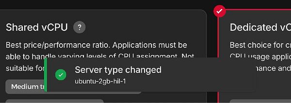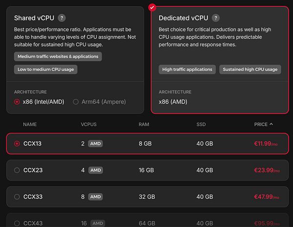 upgrade server to CCX13, dedicated $12/mo server for Minecraft