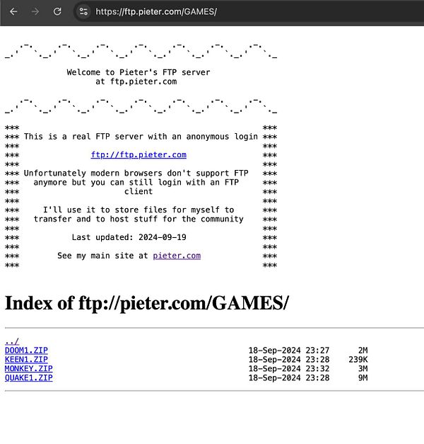 add Doom 1, Commander Keen, Monkey Island, Quake 1, Win 3.1, MS-DOS 6.2 to my FTP server for retro