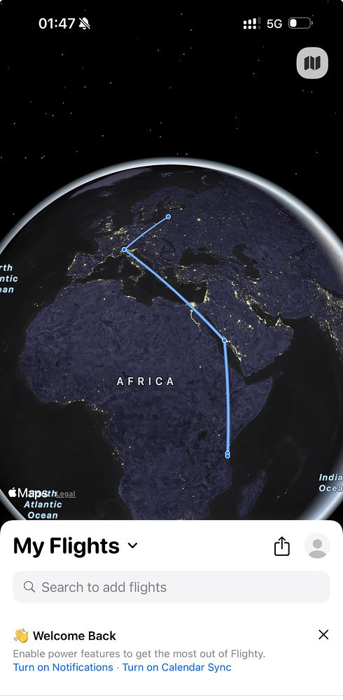Check-in for 24 hours of flying home