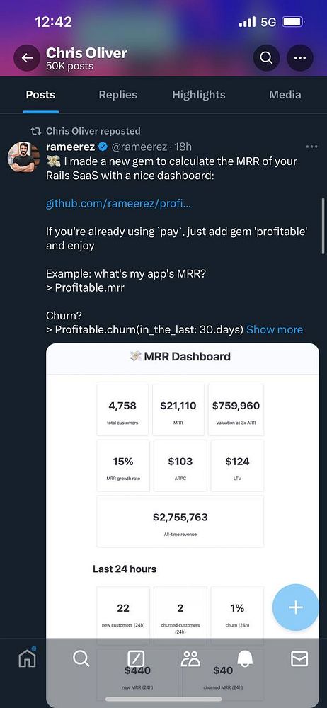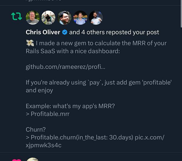 Get retweeted by @excid3, creator of the pay gem and one of my Ruby heroes