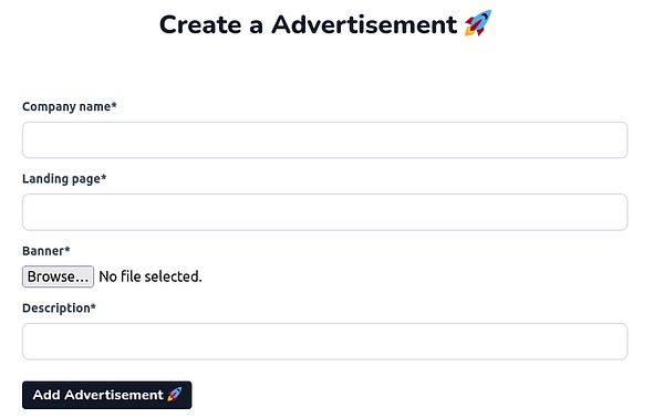 Added both advertisement and add-recipe forms with crispy-forms tailwind.