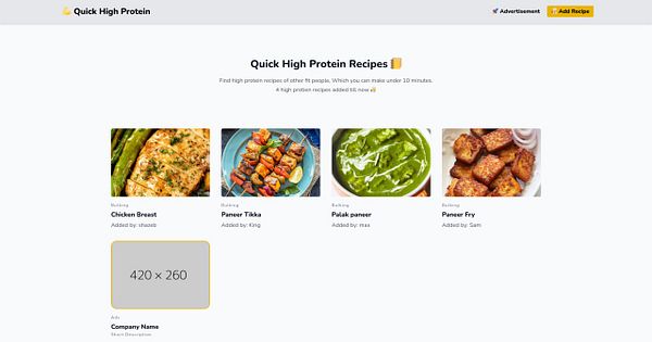 A website where you can find all the high protein recipes.