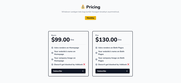 Changed adv page and added pricing demo.