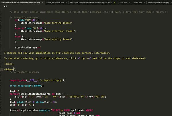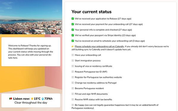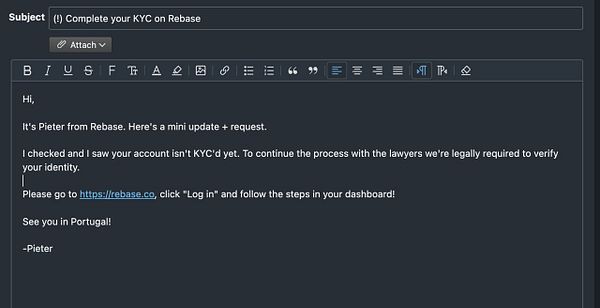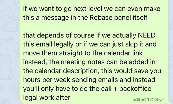 #rebase making the theoretical time from sign up to schedule call 1 minute (before for layer this would take 3 weeks of emailing, sending invoices, bank transfering money, signing PDF forms, signing KYC forms etc.)