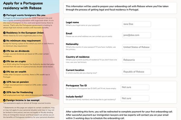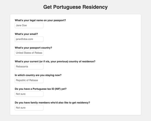 Portugal application form