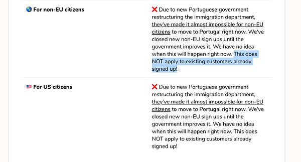 close #rebase sign ups for Non-EU and US because Portuguese government is restructuring the immigration department making it almost impossible to move to EU now