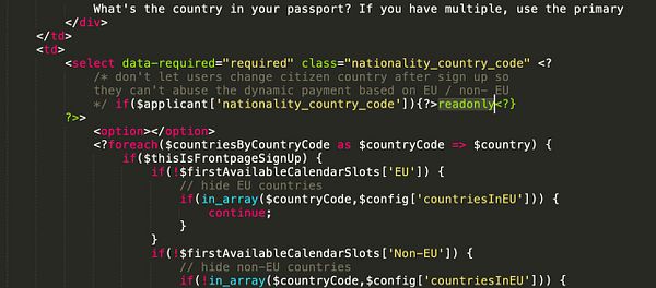 don’t let people change nationality country on rebase AFTERs signing up because they could sign up for cheap EU rate $250 and then change to non-EU $500 #rebase