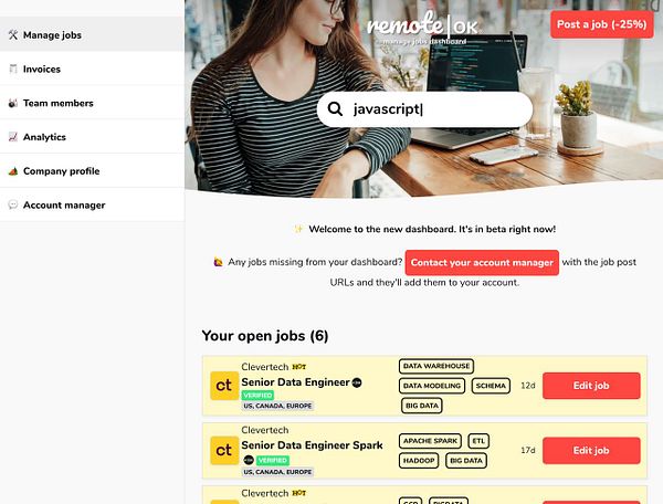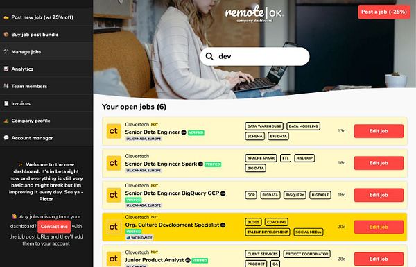 add beta text manage job dashboard