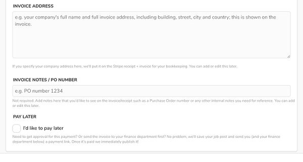 add to invoice that they can edit their address and VAT code details with the edit job post link on there