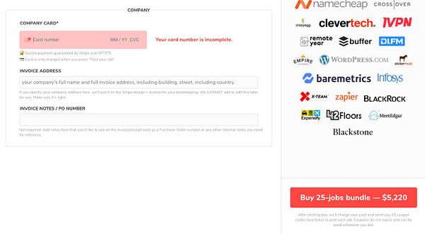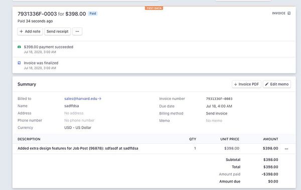 enable buying upsells after a job is posted and charge it to card on file