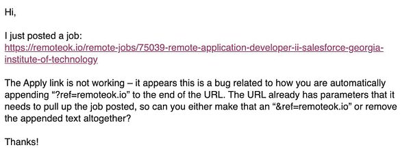 deploy bugfix for #remoteok apply_url's that have ?query=parameters in them and Remote OK would add ?ref=remoteok and ?query=paremeters?ref=remoteok would break URL, now check for ? and do &ref=remoteok