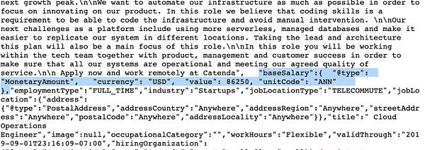 add annual “baseSalary” JSON-LD Schema for Google, 1) if available, convert from language to annual salary USD integer, 2) if not available, use average salaries of tag (like DevOps) and set that #remoteok