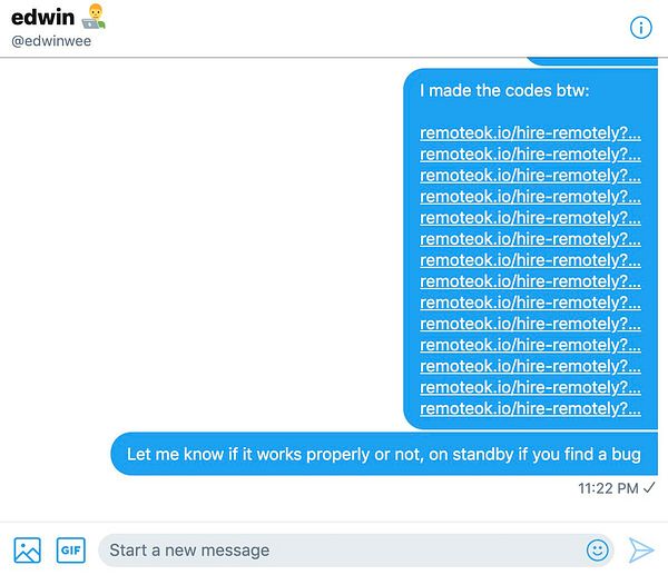 send @marckohlbrugge discount code for Startup Jobs re-sold post to
