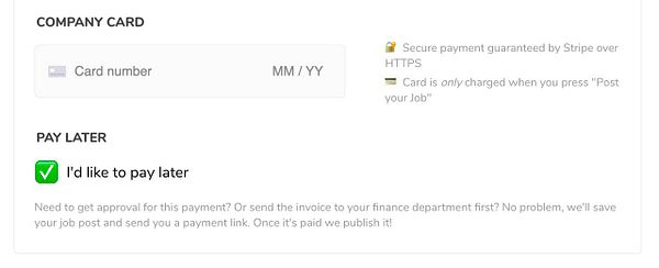 let HR depts save job post before paying so they can send it to the finance dept to pay