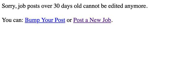block job post editing after 30 days to avoid companies just bumping a post and editing it into a new job post