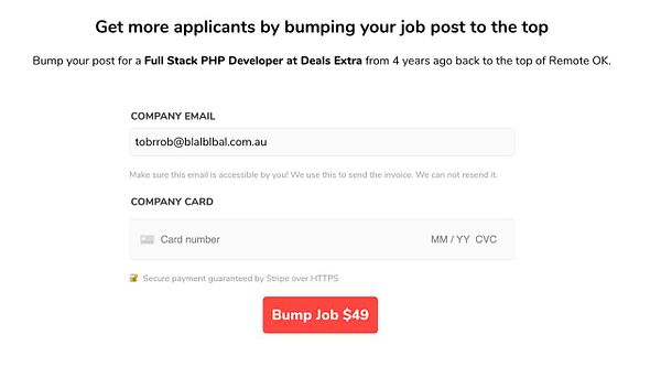 make pricing discounted on first month of quarter and more expensive on last month of quarter because on end of quarter companies always spend their HR budget #remoteok
