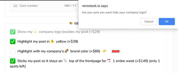 "Are you sure you want to hide company logo?" confirmation alert because customer accidentally hided their logo