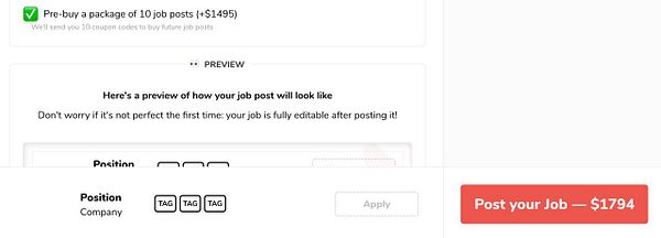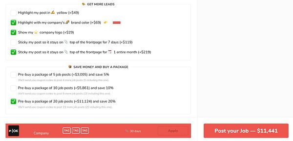 upsell multiple job posts packages discountdd like 5x 10x 25x posts