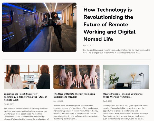 blog frontpage with columns