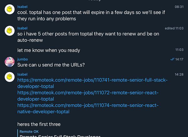 fix TopTal jobs did not auto renew because the new autoCloseJobs.php bot sets jobs to closed=1 in 30 days after posting or last renewal, and the autoBumpJobsThatAreSetToAutoBumpAndChargeThem.php bot does not renew jobs that are set to closed=1 because it expects them to have been closed by a human (as that was the case before the autoCloseJobs.php existed)