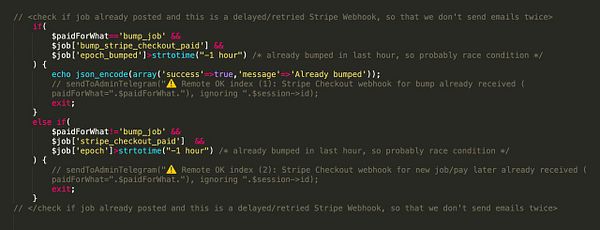 add new code for race condition if Stripe webhooks fire twice but job already posted or bumped but use time of post or bump to check for it to ignore, so that multiple manual bumps can occur succesfully over time #remoteok