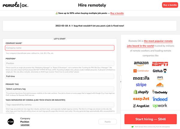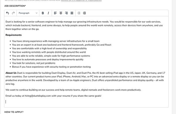fix new TinyMCE HTML editor post job was broken because I forgot to add check if description was filled out and it would check for the old SimpleMDE test value which didn’t exist so it would never let you post #remoteok