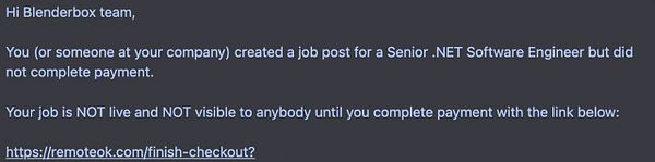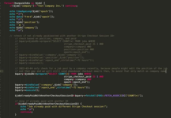 check for abandoned job posts with same company name but not job position because companies might change position of a job that’s waiting to be paid and then pay it, which would still send out abandoned checkout emails #remoteok