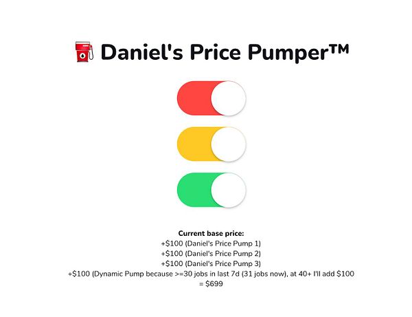 increase @daniellockyer’s price pumper from $75 to $100 so that base price becomes $699 for a job post