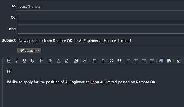 start tracking mailto: links for jobs with only [apply_email] to by redirecting them with the redirector e.g. remoteok.com/l/107093 because Honu AI asked about it, before I didn’t because I wasn’t able to redirect to mailto: with PHP header(“Location:”) but now I use JS and it works