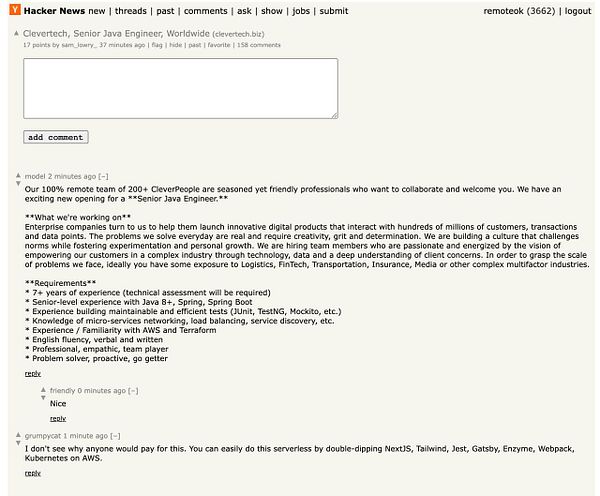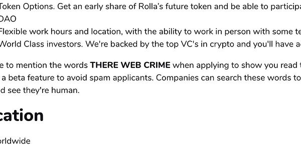 remove the “Be sure to mention the words DOSE VERY CLOG when applying to show you read the job post completely. This is a beta feature to avoid spam applicants. Companies can search these words to find applicants that read this and see they're human.” anti spam text because company asked and it used the word “WEB CRIME” and they’re a crypto finance firm (oops)