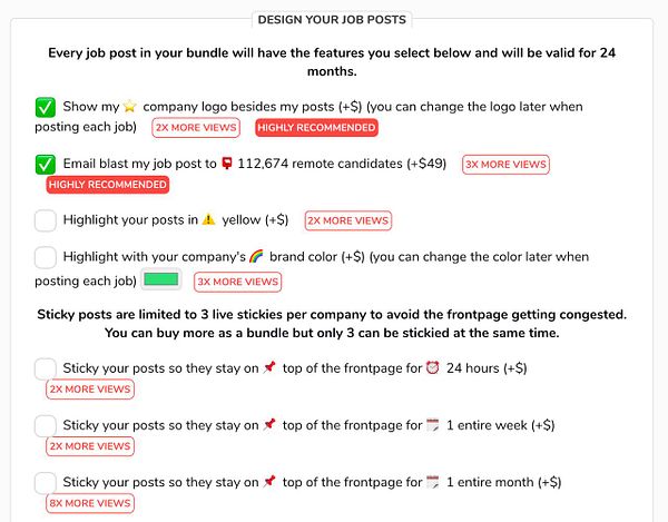 tell about sticky one company limit on bundle buy page to avoid companies buying more bundles thinking they can buy our frontpage as a billboard #remoteok (say no to BigCo)