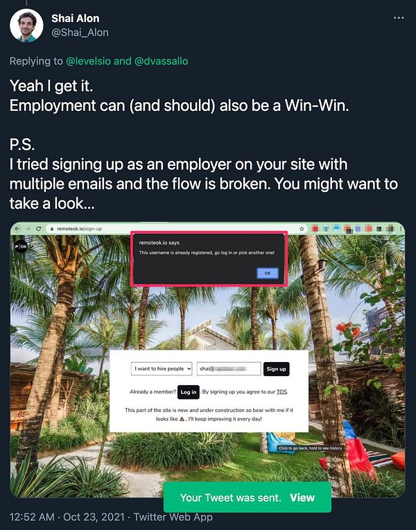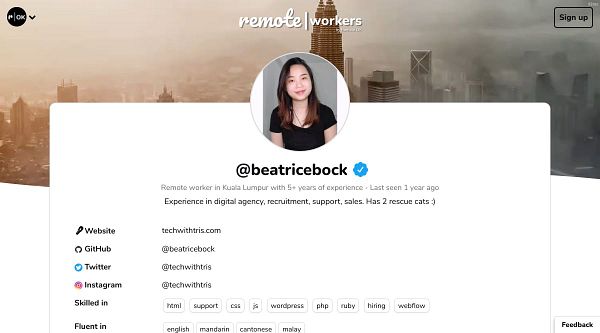 stop hiding usernames on #remoteok workers with e.g. /@6b53e6f39747796d877104417c583fc2 and just show /@username because if recruiters won’t pay they won’t pay anyway and this way more people will hopefully share their profile #remoteok