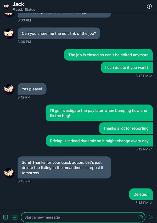 with Dynamite Jobs because Pay Later when bumping didn’t work