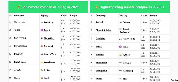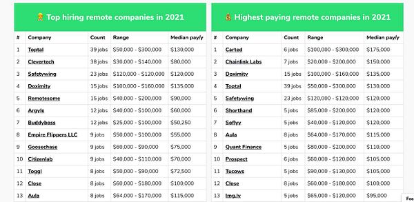add [ Highest paying remote companies ] and [ Top hiring remote companies ]
