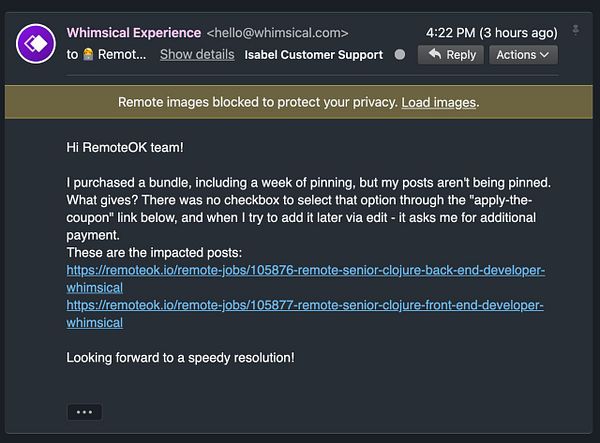 manually publish job post because European company did not want to pay in EUR but pay in USD because we localize Stripe Checkout for EU payment methods in EUR