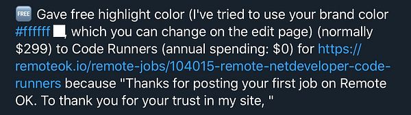 use Clearbit Enrichment API to detect if company has >500 employees or >$250M VC raised and in that case enable show_logo, highlight_color and sticky for a week to increase visibility #remoteok