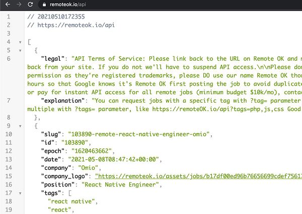 #remoteok remoteok.io/api is requested by Googlebot, Facebook bot, Twitterbot and then show the Remote OK API image, title, description instead of the JSON API reply so it can be more easily shared on social media