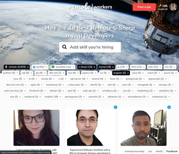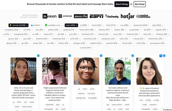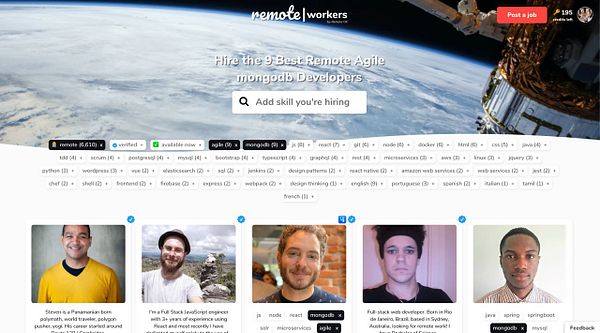 #remoteworkers (e.g. /hire/mongodb+agile -> /hire/agile+mongodb)