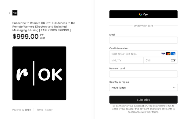 add Stripe checkout for recruiters to get access to