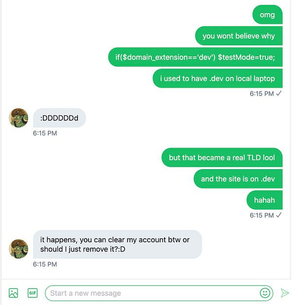 #remoteworkers because it had a TLD ending with .dev and that used to be on my test site on laptop