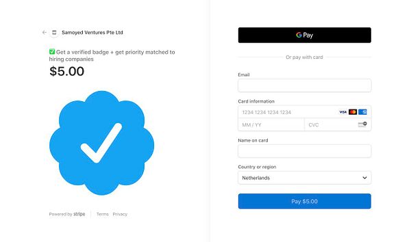 add Verified Badge $5 + get priority matched to hiring companies on Remote OK