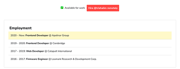 style resume better with borders and padding and highlight current position