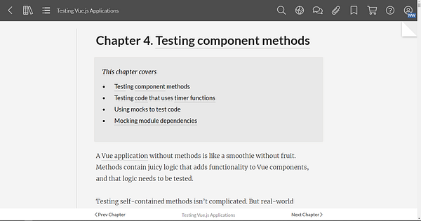 Read 'Testing Vue.js Applications' for 40+ minutes, got up to section 4.5