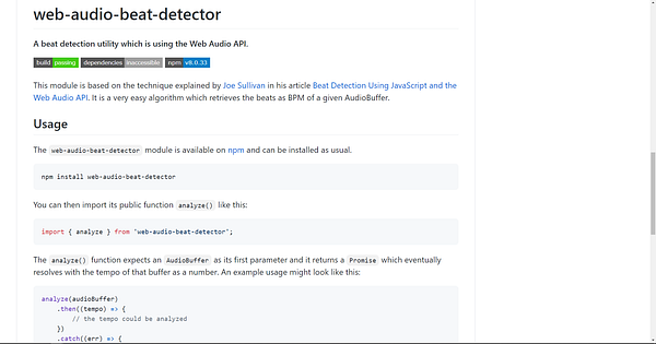 Researched JavaScript beat-detection libraries, found out about Essentia.js and web-audio-beat-detector. Now I just need to figure out how to use them.