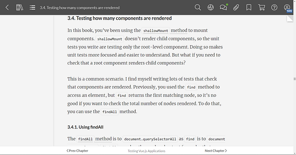Read 'Testing Vue.js Applications' for 30+ minutes, got up to section 3.4.
