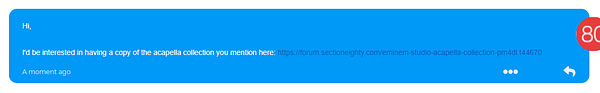 Sent a DM to someone who had a collection of all of Eminem's acapellas (useful for AI training).