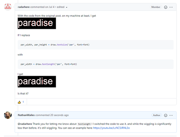 Replied to a PIL dev's suggestion to use .textlength() to remove the wiggling of lyrics.