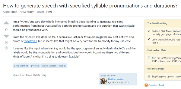 Posted on StackOverflow asking for advice on how to generate speech with specified syllable pronunciations and durations.